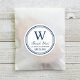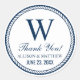 Polished nautical wedding favor stickers featuring a bold oversized monogram initial framed by an elegant navy rope circle with "Thank You" script, the couple's names, and wedding date. The clean white and navy blue design makes a sophisticated seal for favor bags or envelopes at your coastal wedding celebration. All text and the monogram initial are fully customizable.