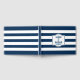 A bold navy and white striped wedding guest book featuring a centered anchor crest with the couple's names and wedding date. The classic nautical design wraps the full cover front and back with wide navy stripes and a personalized spine. Customize the couple's names and wedding date.