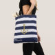 Nautical Navy Stripe Gold Anchor Personalized Tote Bag