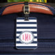 Nautical Navy Stripe & Pink Monogram Luggage Tag