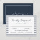 Nautical Wedding RSVP Card in classic navy and white — a chic coastal wedding stationery piece perfect for elegant seaside celebrations. Inspired by timeless Coastal Elegance and yacht-club aesthetics, this crisp navy stripe response card is designed for the modern coastal bride who loves refined simplicity. Style with navy envelopes, wax seals, or matching nautical invitation suites for a polished wedding aesthetic.
