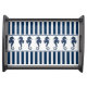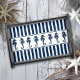 A great choice for your beach home, sailing vessel or to add a touch of nautical decor to your kitchen or dining area, this seaside design includes a white band of navy blue sea horses across a navy and pale gray stripe pattern. These trays are available in 2 sizes; shown here in the small 14.5-inch Width x 10-inch Length, they are also available in a large size that is 19-inch Width x 14-inch Length.