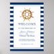 Nautical Navy Stripes Steering Wheel Welcome Poster
