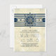 Old nautical save the date postcards with vintage boat wheel, navy blue stripes and bride's and groom's initials. Perfect save the date card for nautical, beach wedding or for adventurous wedding in cruise / with yacht or ship!