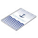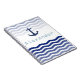 This custom notebook features a nautical design with a navy blue colored anchor printed near the center. Sea waves appear near the top in a pale blue color, with darker waves floating across the bottom. A sample name is printed beneath the anchor. You can personalize the notebook and include your own custom name or message.
