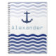 Nautical Navy Waves and Anchor Personalized Name Notebook
