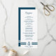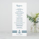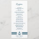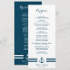 A modern Wedding Program in a Nautical theme, featuring an anchor illustration and navy stripes. Can also be used as a Wedding Menu.