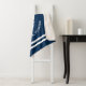 A classic nautical sherpa blanket featuring a bold anchor surrounded by "Welcome Aboard" text, your custom boat name, and home port. Crisp white graphics pop against a deep navy blue background, framed by nautical-inspired white stripes at top and bottom. The plush sherpa lining adds extra warmth for cool evenings on the water. All text is fully customizable to feature your vessel name and location. A cozy addition to any boat cabin, dock house, or coastal home.