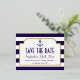Nautical Navy & White Stripe Anchor Save The Date Foil Invitation Postcard