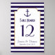 Nautical Navy & White Stripe Anchor Wedding Table Numbers.