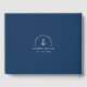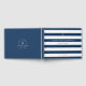 Modern and minimalistic nautical themed guest book design with a bold navy and white stripe design and white ocean anchor icon. Customized with name and date. The reverse side features a navy background color with modern nautical crest design. This guest book is great for nautical themed weddings, baby shower, birthdays and more.
