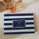 Anchors aweigh! Our coastal chic guest book is perfect for inviting your boat or yacht guests to share their memories and good wishes. Featuring a classic nautical color palette of navy blue and white, our guest book's front and back are covered in wide horizontal navy and white stripes, with a solid navy spine. Personalize the front and spine with your boat name, accented with a pair of oars.