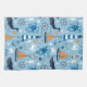 Ocean and nautical theme design features whales, orange sailboats, octopus, crabs, seahorses, ships wheels, anchors, lighthouses, and more on a pretty light blue background.