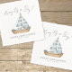 This nautical-themed baby shower napkin features a classic blue and white sailboat centered in the design, with a red life ring and subtle rope accents for a timeless maritime touch.