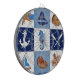 Original watercolor painted design by Sandra Gale, featuring blocks of nautical themed drawings like star fish, anchor, ship, turtle, and shells. Great design for the summer, beach homes, bungalows or for anyone who loves the beach, ocean or fish.
