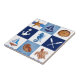 Original watercolor painted design by Sandra Gale, featuring blocks of nautical themed drawings like star fish, anchor, ship, turtle, and shells. Great design for the summer, beach homes, bungalows or for anyone who loves the beach, ocean or fish.