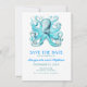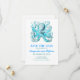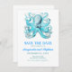 White beach save the date cards with turquoise nautical octopus drawing. Wonderful save the date card for elegant beach wedding, coastal wedding, tropical destination wedding. Tie it with any color ribbon, or little rope and you'll have a perfect save the date.