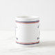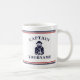 Nautical old scruff captain with your name in block text mug. Navy blue on a white background with navy blue and red striped border.