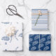Perfect for a coastal wedding, engagement party or other event, this set of three sheets of gift wrapping paper features easy to edit text surrounding an illustrated oyster shell, navy blue and white stripes and a repeat oyster shell pattern to add a bit of coastal flair to gift giving and crafts.