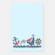 Graphic illustration of nautical pattern with sailboat, ship's wheel, anchor, and whale. Great for ocean lovers for any special occasion. Each 4”x6” pad comes with 50 sticky notes printed in full color. You can add monogram, names, or message.