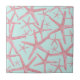 A cute and trendy teal or seafoam coral pink coastal beach pattern with starfish. Feel free to change the background color to match your space! Whether you want to use this tile as a little coaster or trivet for a drink or plate... or you want to go big with a kitchen backsplash, or bathroom tile, is up to you! Do a full wall, border, or just an accent tile. Let your interior design dreams fly! Teal Pink Nautical Starfish Sea Beach Pattern ceramic tile