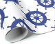 Nautical pattern with blue ships wheel pattern that lets you wrap presents in masculine style. I designed this as gift wrap paper in a boating theme that works for anyone who loves boats, sailing, or nautical designs.