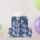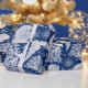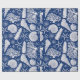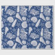 Cool blue and white nautical pattern wrapping paper featuring sea shells, coral, seaweed and starfish.