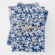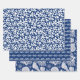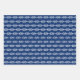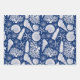 Cool blue and white nautical pattern wrapping paper featuring sea shells, coral, seaweed, starfish, and rope.