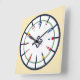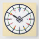 The hour "numbers" on this nautical clock are formed from the marine signal pennants for the numbers 1 - 12. In primary red, blue and green and yellow on a pale ecru beige and white background. Crossed anchors at the center.