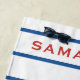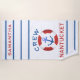 Nautical personalized Nantucket beach towel. Red and blue nautical anchor and buoy design read Crew Nantucket, easy to personalize with their name.