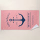 Pretty coral pink adds a soft, feminine twist to this nautical family beach house towel. Features a bold navy anchor with an arched family monogram name, established year, Beach House featured text, and customizable location in script. All text is fully editable to personalize with your family name, year, and beach destination. A sweet and stylish coastal keepsake perfect for the shore house, a girls' beach trip, or a personalized housewarming gift.