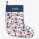 Nautical pink stripe navy blue anchor pattern small christmas stocking