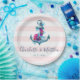 Nautical wedding paper plates design featuring anchor with flowers on a pink stripes background.