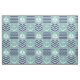 A quilt inspired pattern of stormy turquoise squares, decorated with a white sailboat and anchor, and deep navy blue squares, accented with paler blue chevrons and waves, is accented by white stitching to create a classic nautical feel.