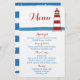 Nautical Red Lighthouse Blue Stripes Wedding Menu