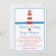Nautical Red White Lighthouse Blue Stripes Wedding Invitation