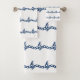Nautical rope waves navy Blue white pattern Bath Towel Set