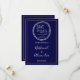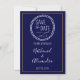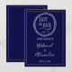 A minimal nautical themed wedding Save the Date card. A white rope wreath on a navy-blue background with a gold frame and the bride and groom's names in elegant script. The classic navy blue and white color scheme evokes the serenity of the sea. It's a timeless choice that complements the overall theme of your wedding.