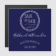 A nautical themed wedding Save the Date Square Magnetic Invitation. A white rope wreath on a navy-blue background. The classic navy-blue and white color scheme evokes the serenity of the sea. It's a timeless choice that complements the overall theme of your wedding.