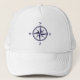 Nautical rose compass star navy blue boating Trucker Hat. North East South West wind rose design. Maritime design cap for sailing, yachting and boating. Gifts for boat captain, skipper, sailor, fisher etc. Colors of logo and hat can be changed.