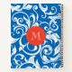 Looking for a beautiful monogram notebook? Keep your special notes in this elegant blue notebook featuring your custom monogram. Our nautical navy blue floral pattern has swirls and scrolls with a red seal for your initial.