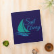 Nautical sail away sailboat in a textured sea green and aqua blue.