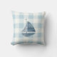 Nautical Sailboat Blue Gingham Check Throw Pillow