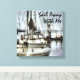 Nautical Sailboat Sailing Theme Canvas Print with text: Sail Away With Me. Designed in soft watercolor shades of blue, grey and black, this Sailboat print makes a great gift for those who love sailing, and boating. Great for the cottage or any room in your home. To personalize the text: Sail Away With Me, can be changed to your preferred text using our easy template.