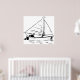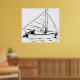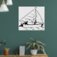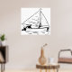 Nautical Sailboat Sketch White Ink Ocean Poster