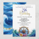 Celebrate a special milestone in coastal style with this elegant nautical birthday invitation featuring a beautifully detailed ship wheel surrounded by ocean waves and tropical florals. The sophisticated navy blue and gold color palette creates a timeless maritime theme that is perfect for honoring a memorable 25th birthday celebration by the sea, at a beach venue, or any ocean-inspired setting.