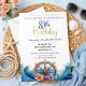 Celebrate a remarkable milestone with this elegant nautical 80th birthday invitation, designed to honor a lifetime of cherished memories and adventures. Featuring a classic sailing ship wheel framed by ocean waves and vibrant tropical florals, this design brings a sophisticated coastal charm that is perfect for seaside venues, waterfront gatherings, or nautical-themed celebrations.