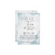 The matter paper is our sample of choice -- it's a reasonably priced, good quality, nice feeling paper stock. We were a little concerned the muted rustic blues might not reproduce all that well (usually by light colored samples), but they're just gorgeous! The white lettering is perfect in combination with the blue background, and the typography is all easy to read.