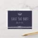 Nautical wedding Save the Date postcards with white anchor and customizable text - you can change text, printed on navy blue background with anchor pattern