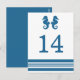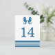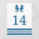 Elegant and classic Nautical Seahorse Wedding Table Number Postcard with a pair of simple seahorses and an array of stripes in dark navy blue and white. This nautical beach themed table card can be easily customized with your wedding details. For more customization options, click on the Customize It button.